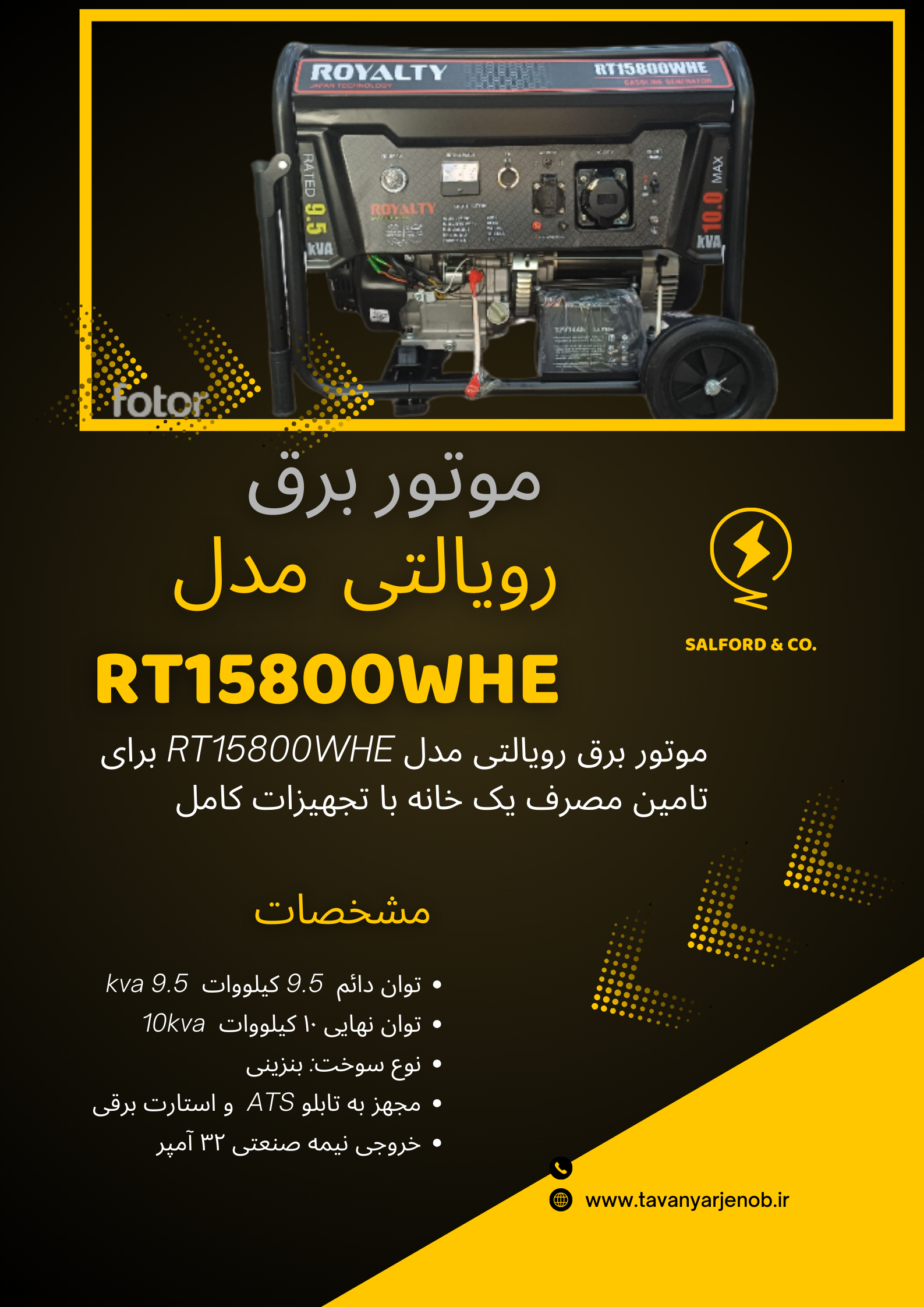 موتور برق بنزینی ۱۰ کیلووات Royalty RT15800WHEتماس بگیرید