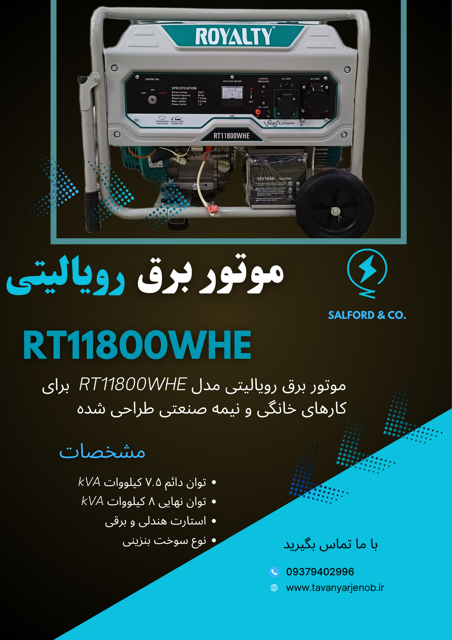 موتور برق بنزینی ۸ کیلووات برند رویالیتی مدل RT11800WHE